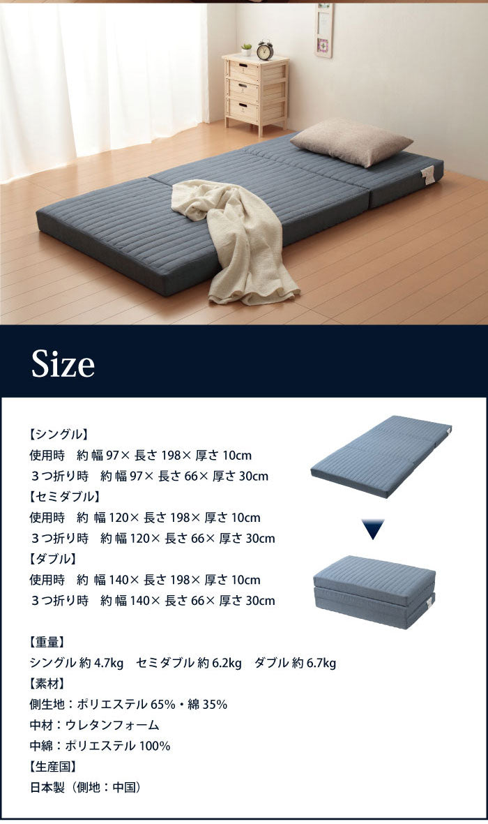 Achilles アキレス 日本製 バランス マットレス セミダブル 三つ折り 3つ折り ウレタン バランスマットレス 厚さ10cm 国産 キルト加工 腰部硬め 腰かため プロファイル加工 コンパクト セミダブルマットレス (代引不可)