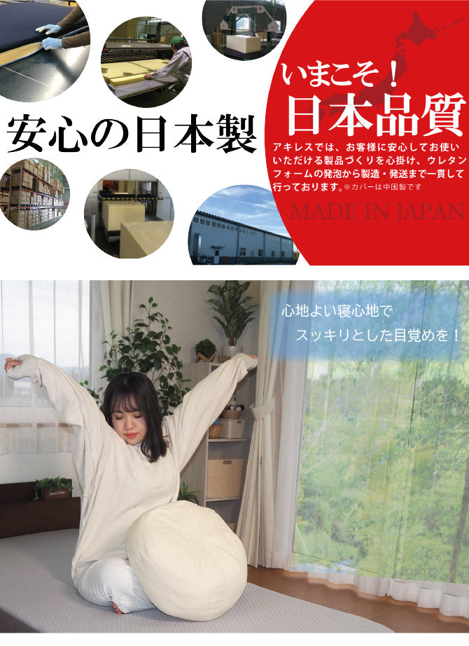 高反発ウレタンフォームは優れた反発力で身体を押し返し沈み込みにくい特性を備えています。