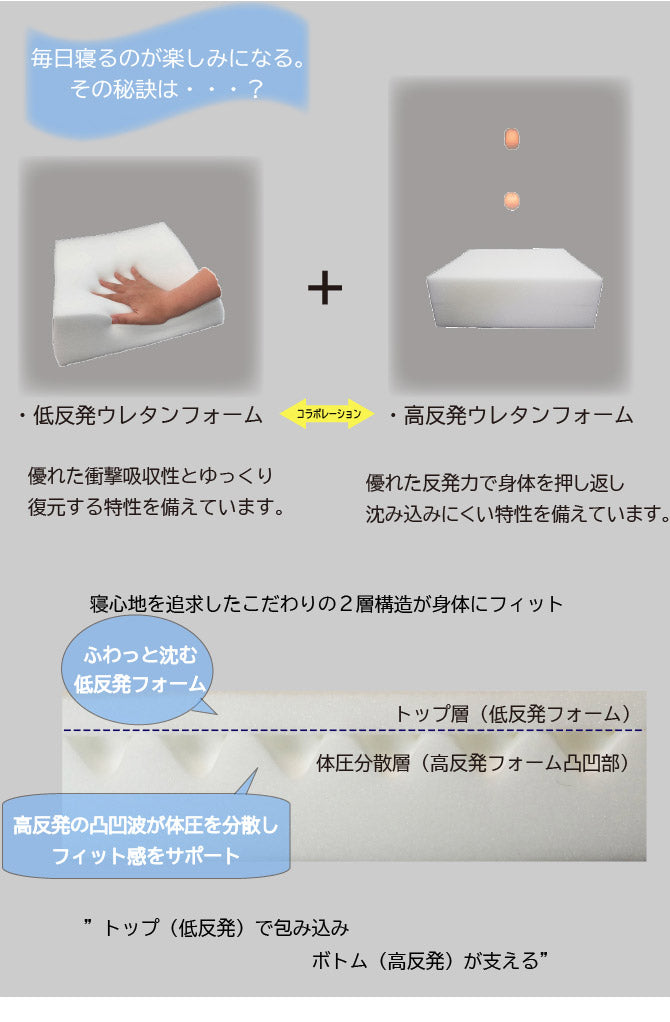 トップ(低反発)で包み込み、ボトム(高反発)で支える。