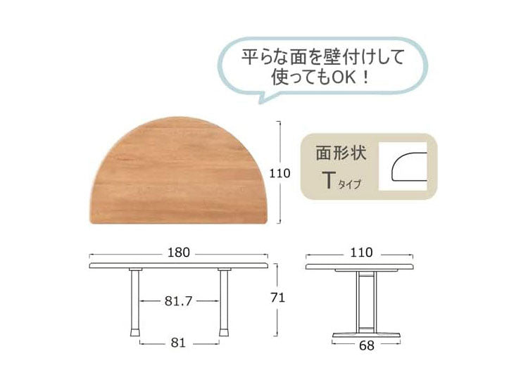 アルボル YUME2 ダイニングテーブル T テーブル 机 丸テーブル 丸型 ナチュラル ブラウン オーク材 北欧 幅180cm 奥行110cm 高さ71cm おしゃれ あたたかみ シンプル(代引不可)
