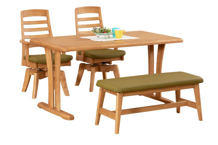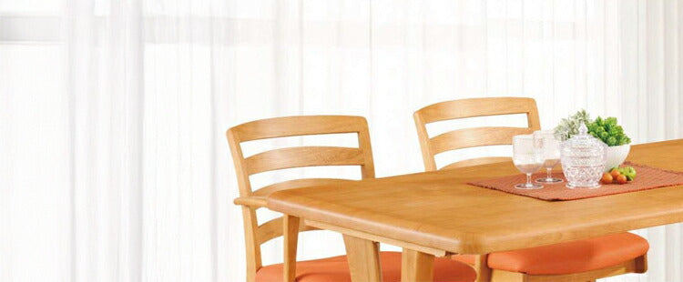 やわらかな色合いのナチュラル調、木質感あふれるダイニングテーブルです。