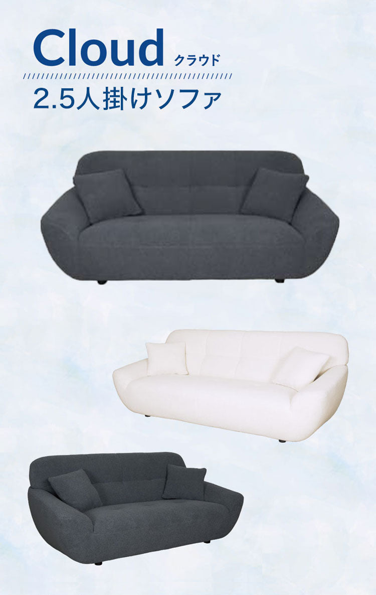 筑波産商 クラウド 2.5P ソファー 2.5人掛け 2人掛け ソファ リラックスチェア チェア チェアー いす リビング ポケットコイル ホワイト グレー ノックダウン仕様 ファブリック Cloud かわいい(代引不可)