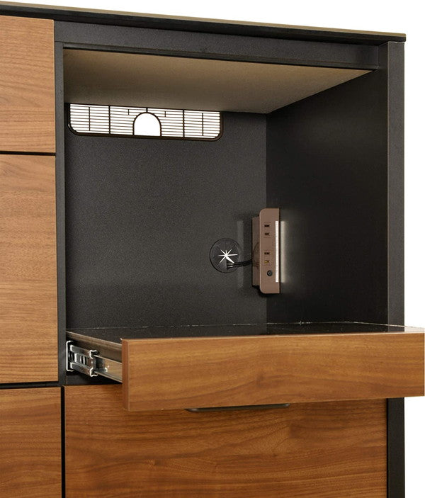 家電収納部分には適湿化素材MOISS(モイス)を使用、熱を逃がす為の排気口も付いております。