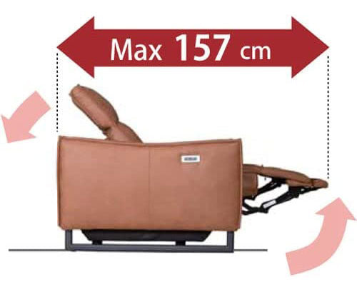 座面が前方にスライドしながら背もたれが倒れる為、壁から約10cm空けて設置することで壁に接触せずにお使い頂けます。
