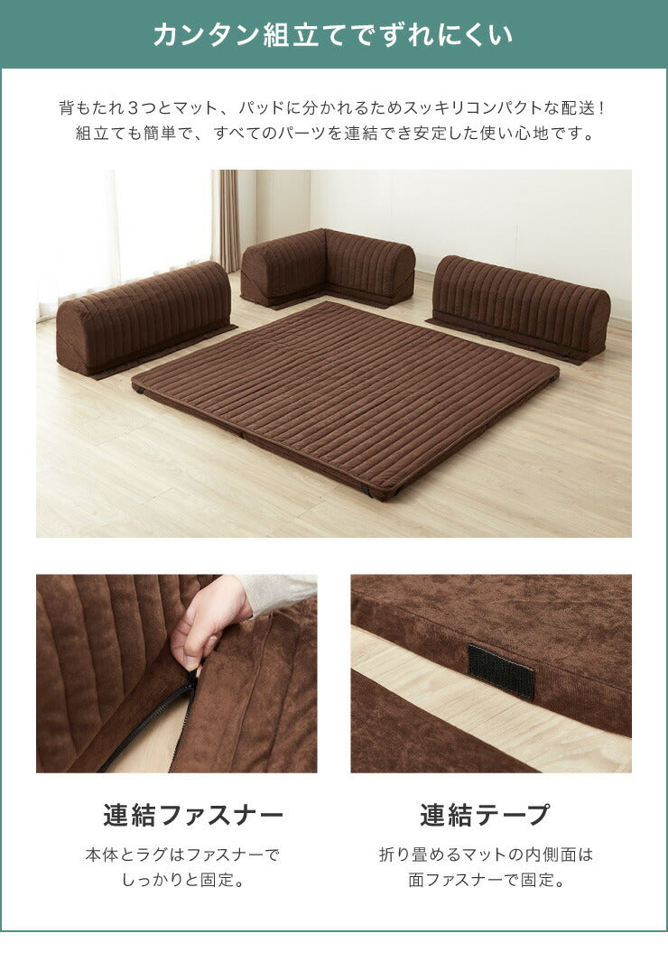 Achilles 日本製 国産 クッションラグ ソファラグ クッションソファ L字型 幅167cm ソファ ソファー フロアソファ コーナーソファ ローソファ ロータイプ ラグ マット セット こたつ シンプル おしゃれ 小 リビング 和室 クッション付き アキレス(代引不可)