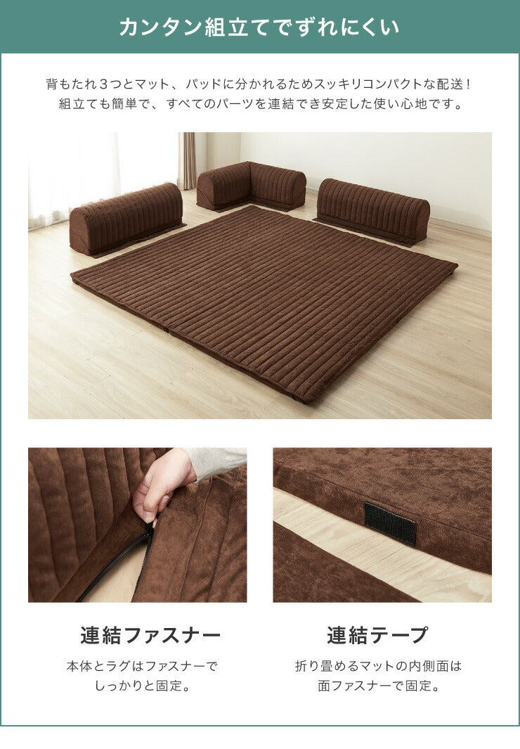 ラグマットと背もたれクッションはファスナーで取り外しが可能です。