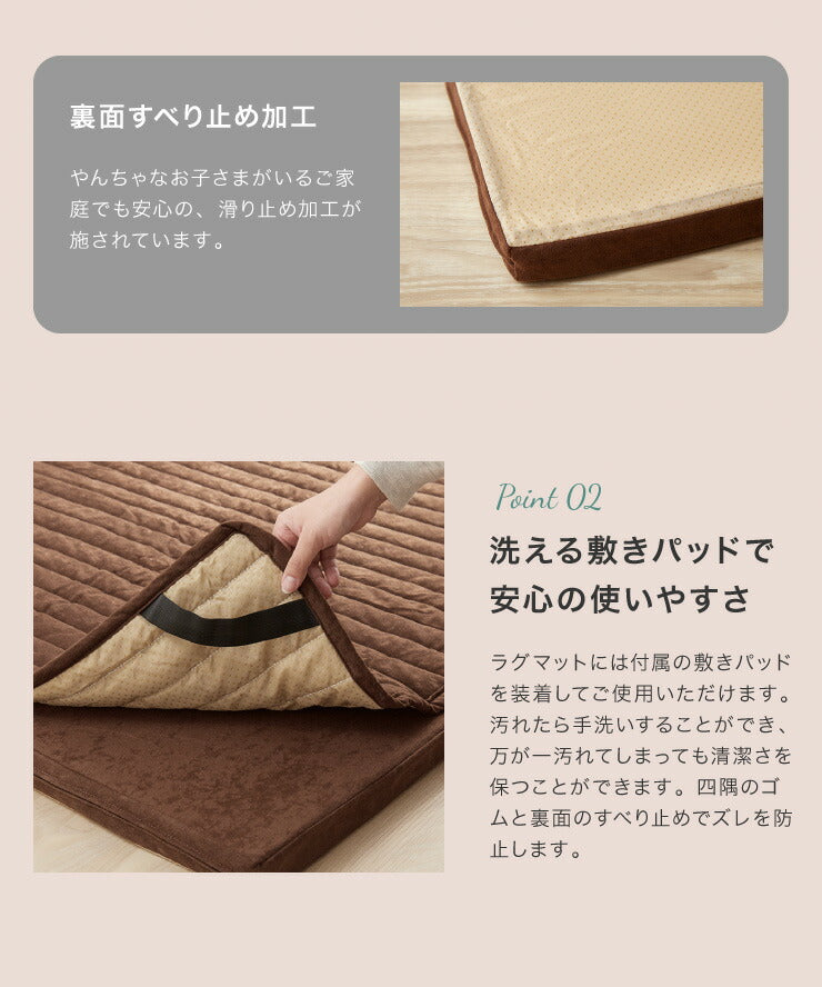 ラグマットは厚み4cmウレタンフォーム使用でふかふかとした座り心地です。
