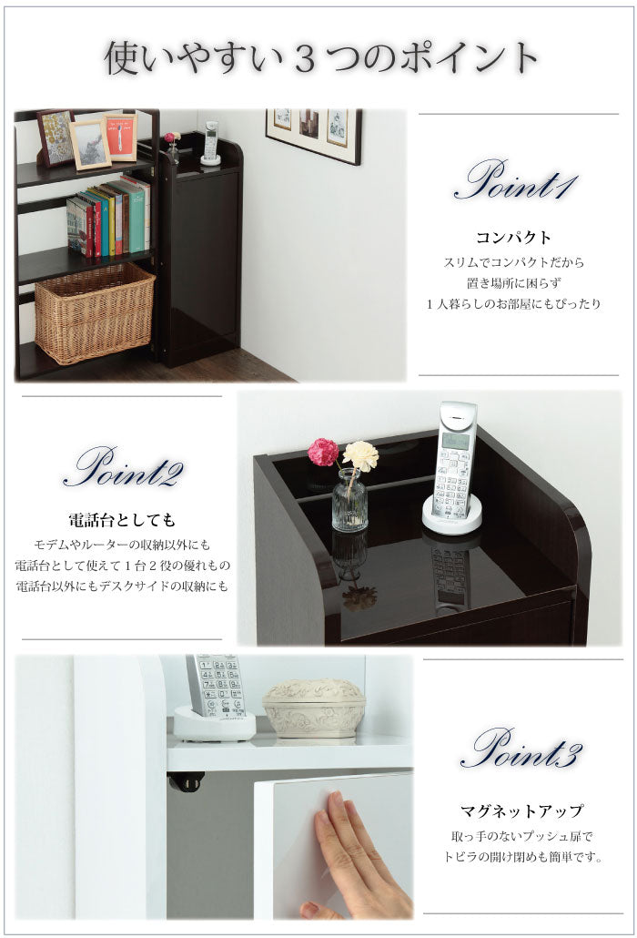 電話台 ファックス台 ラック キャビネット プリンター台 FAX台 モデム収納 ルーター収納 リビング収納 北欧 木製 おしゃれ スリム コンパクトブラウン ホワイト 整理 隙間収納 鏡面仕上げモデム収納 (代引不可)