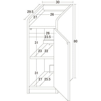 扉内内寸(上部)約W26(23.5)×D23×H31cm(下部)約W26(23.5)×D25.5×H31cm