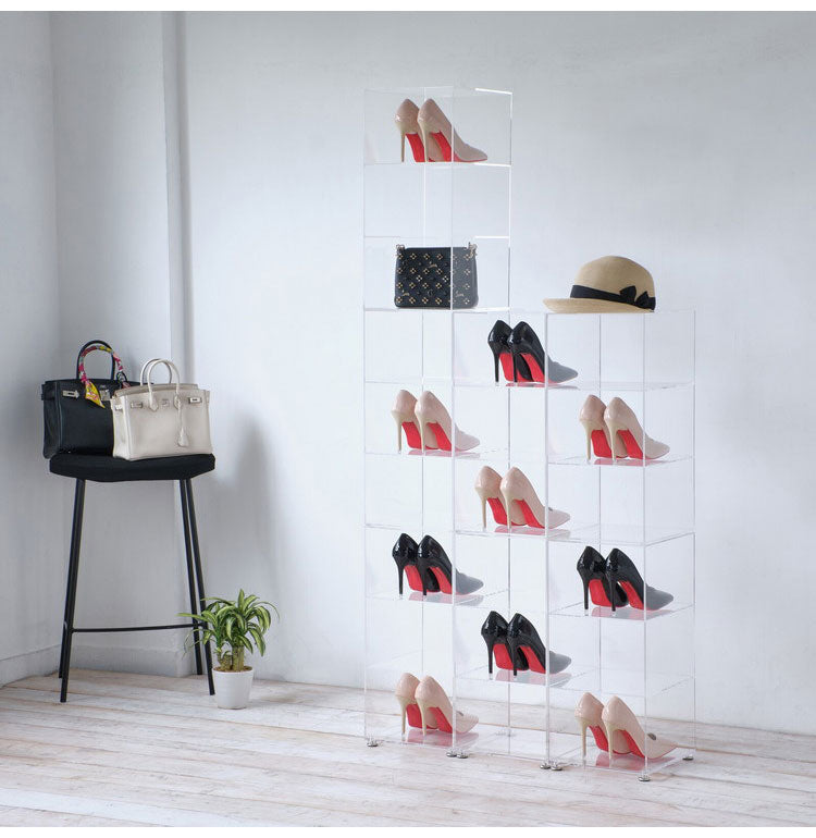 アクリル シューズラック 3段×2個組 透明 見せる収納 シューズケース シューズボックス スニーカーラック コレクションケース ディスプレイラック シンプル おしゃれ(代引不可)