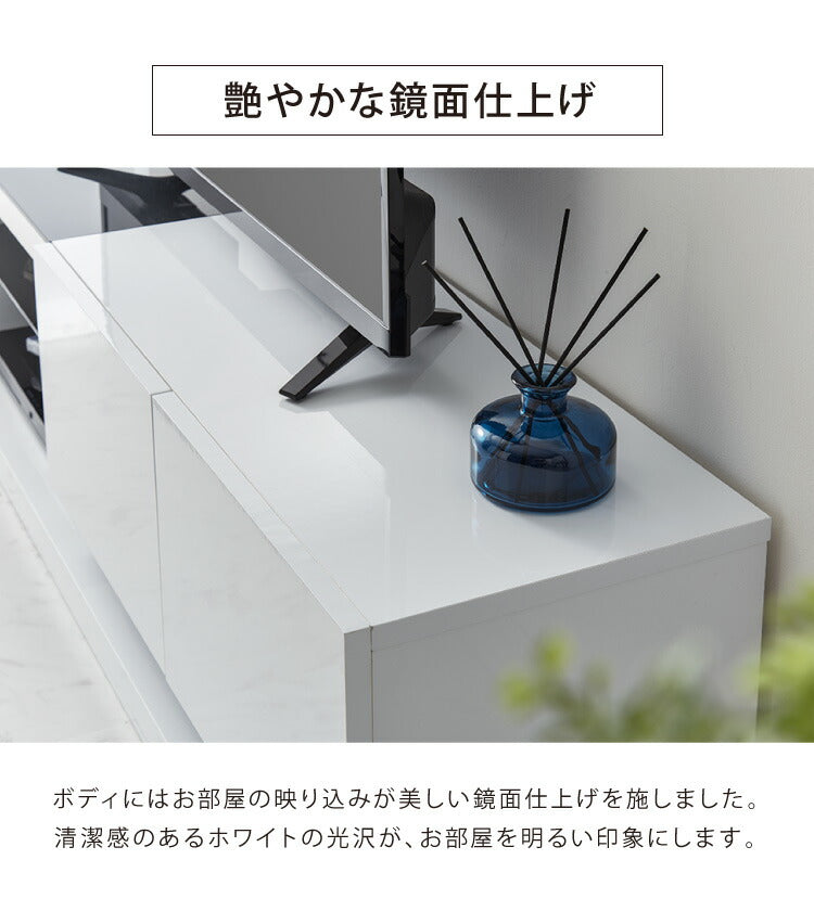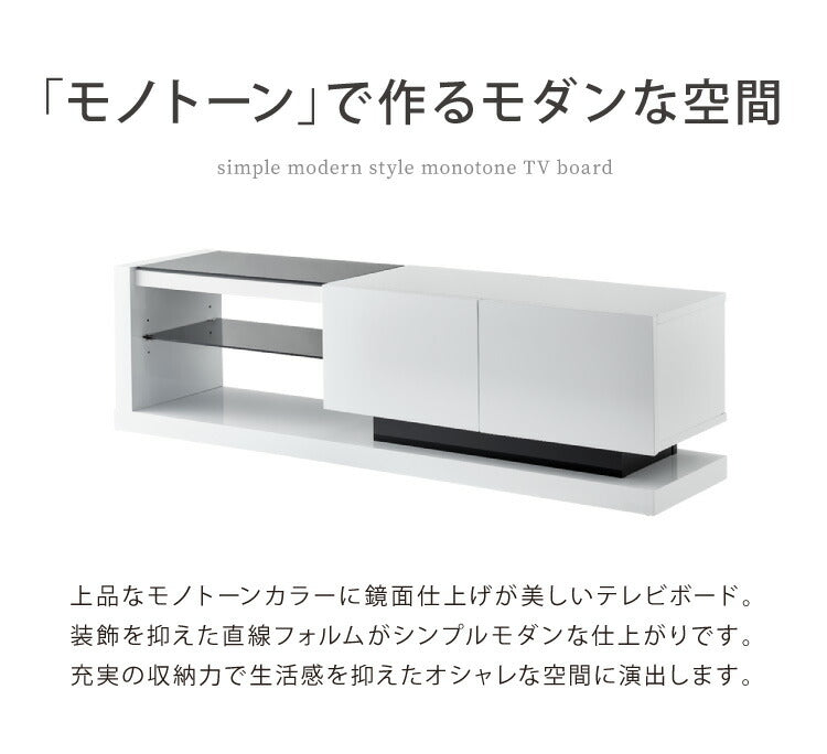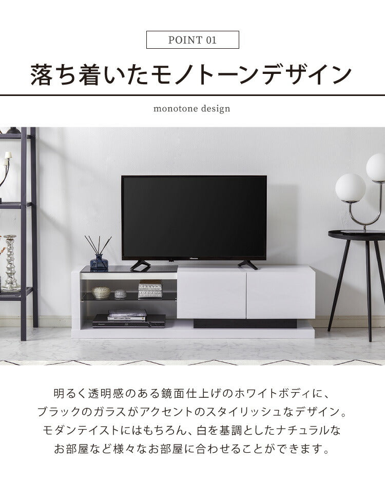 モダンテイストでホワイトの鏡面仕上げをベースにしたTV台です。