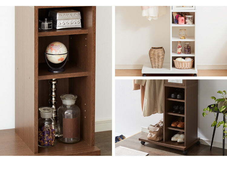 上段は中身を隠せる扉付き。下段は使いやすいオープン棚。