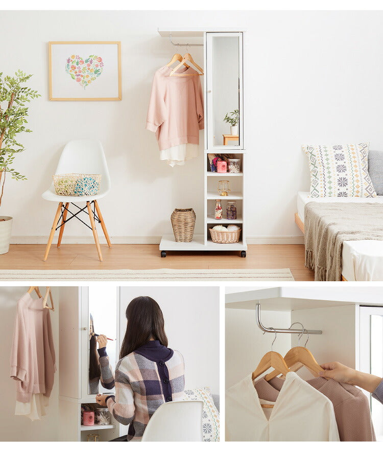 ブティックハンガー 日本製 ハンガーラック ミラー付き 収納 棚 鏡付き スタンドミラー ドレッサー メイク収納 洋服収納 ミラー付きハンガーラック 国産 白 ホワイト かわいい おしゃれ