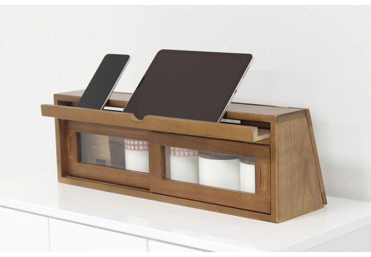 カウンター上収納 扉付き 調味料ラック スパイスラック 木製 スマホスタンド タブレットスタンド 扉収納 キッチン収納 おしゃれ(代引不可)