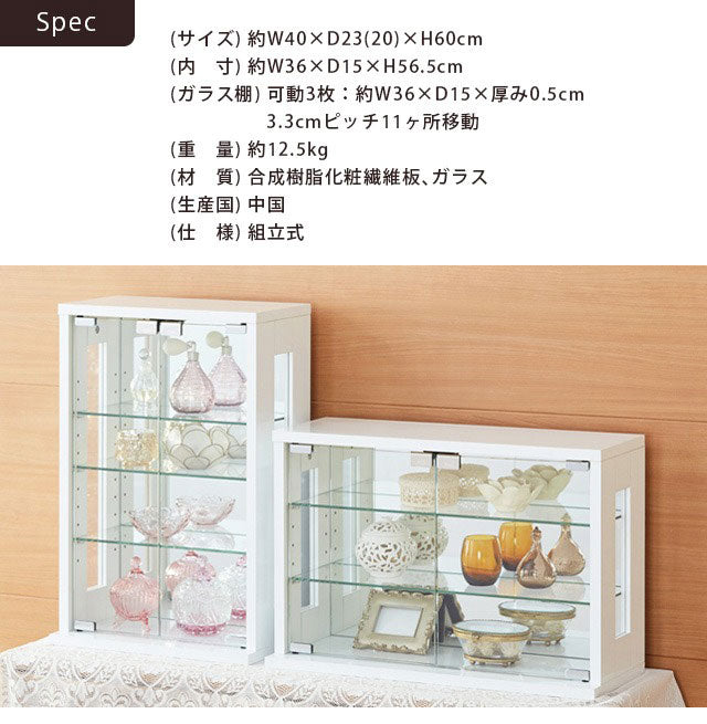 卓上 コレクションケース 縦型 幅40 高さ60 背面ミラー ガラス棚 コレクションラック フィギュアケース ディスプレイラック 棚 ガラスケース シンプル 白 ホワイト おしゃれ(代引不可)