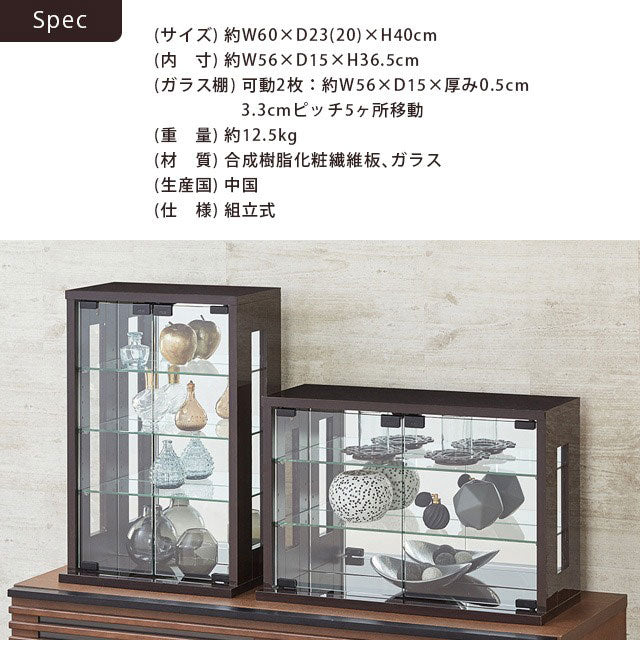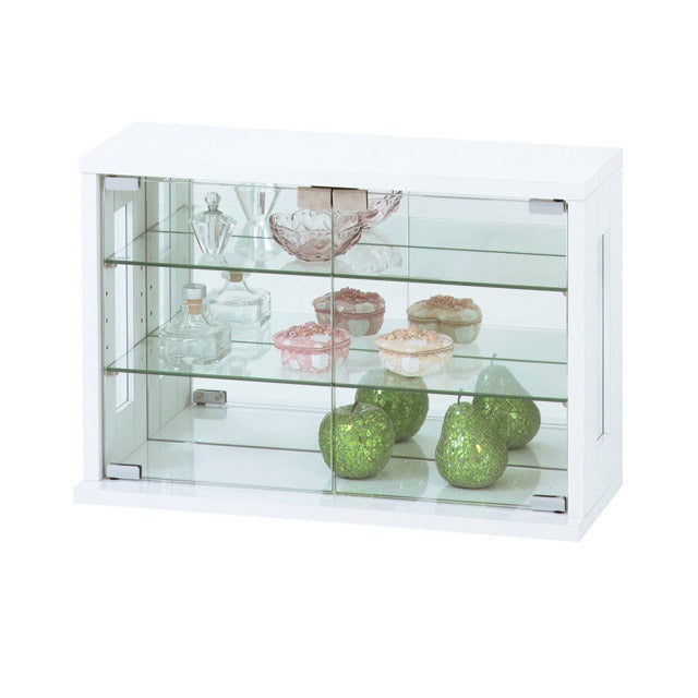 卓上 コレクションケース 横型 幅60 高さ40 背面ミラー ガラス棚 コレクションラック フィギュアケース ディスプレイラック 棚 ガラスケース シンプル 白 ホワイト おしゃれ(代引不可)
