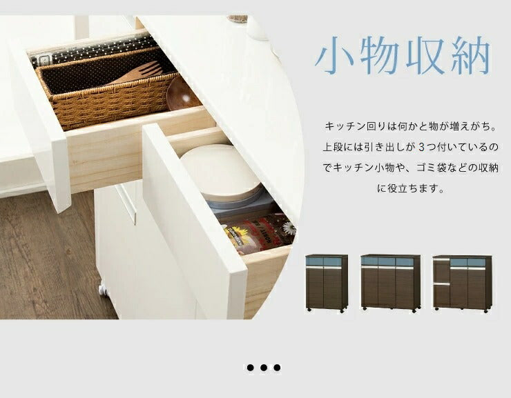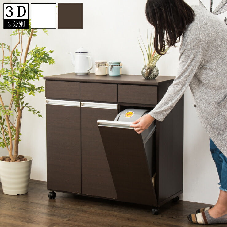 ごみ箱 ゴミ箱 分別 大容量 3分別 完成品 ダストボックス 幅82 スリム キッチンカウンター 鏡面 白 ホワイト キャスター おしゃれ 韓国インテリア(代引不可)