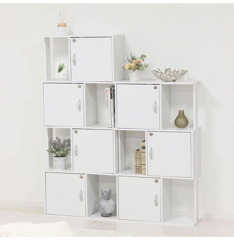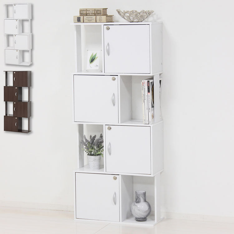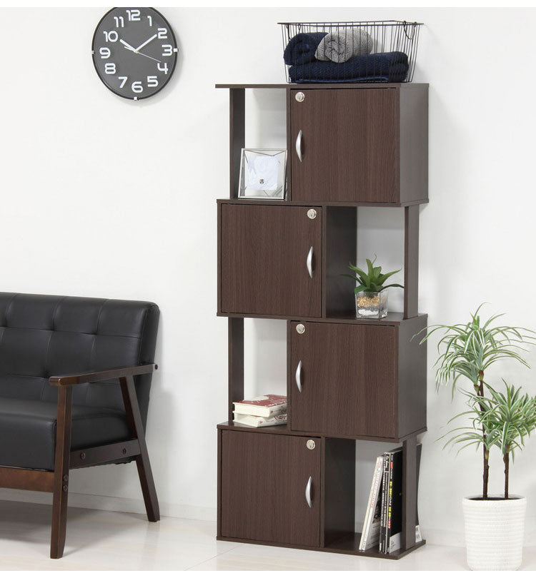 鍵付き ディスプレイラック 4段 A4ファイル収納 オープンラック シェルフ 扉収納 プライバシー保護 キャビネット オフィス おしゃれ(代引不可)