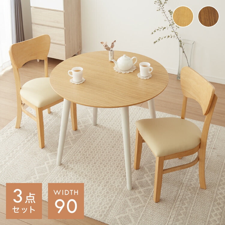 円形ダイニング 3点セット 丸テーブル 90cm 省スペース テーブル+チェア2脚 ダイニングセット 北欧 ナチュラル ラウンドテーブル 丸 円形 円 木製 シンプル かわいい 可愛い おしゃれ(代引不可)