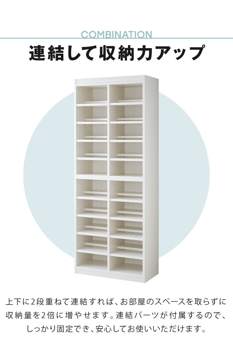 上下段連結ボルト(左右2か所)付属で、縦に2個連結させることでさらに収納力がアップ。