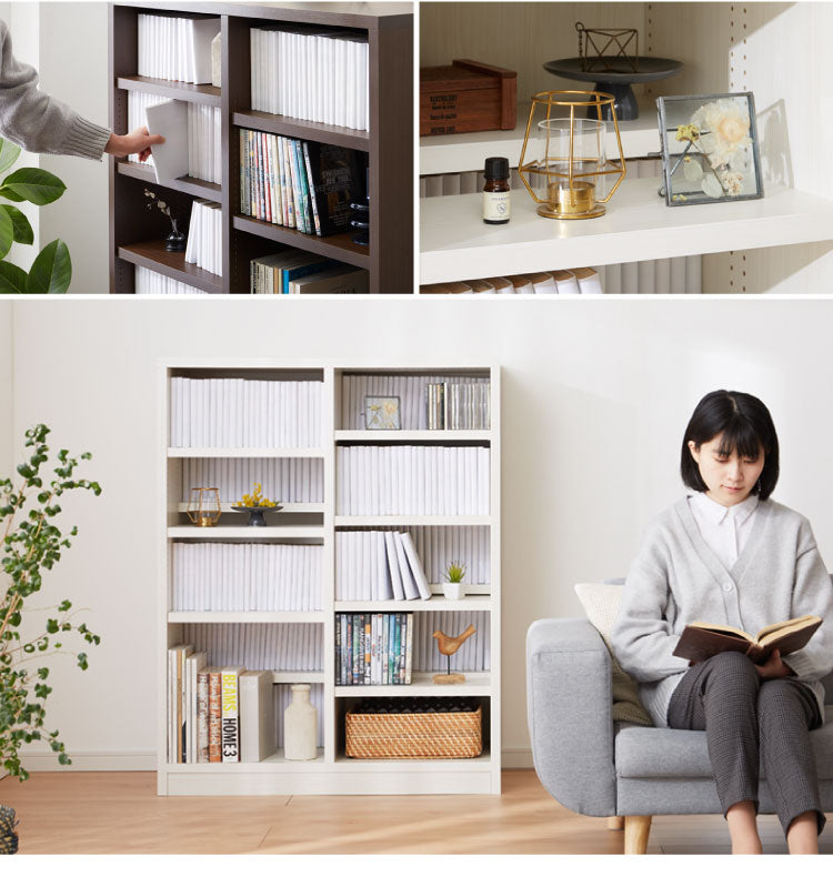 本棚、シェルフ、ブックラック、ブックシェルフ、コミックラック、文庫本、収納、文庫本ラック、文庫本棚、単行本、CD、DVD、ファイル、ダブル棚板、ツイン棚板、前後棚板、ストック、収納術