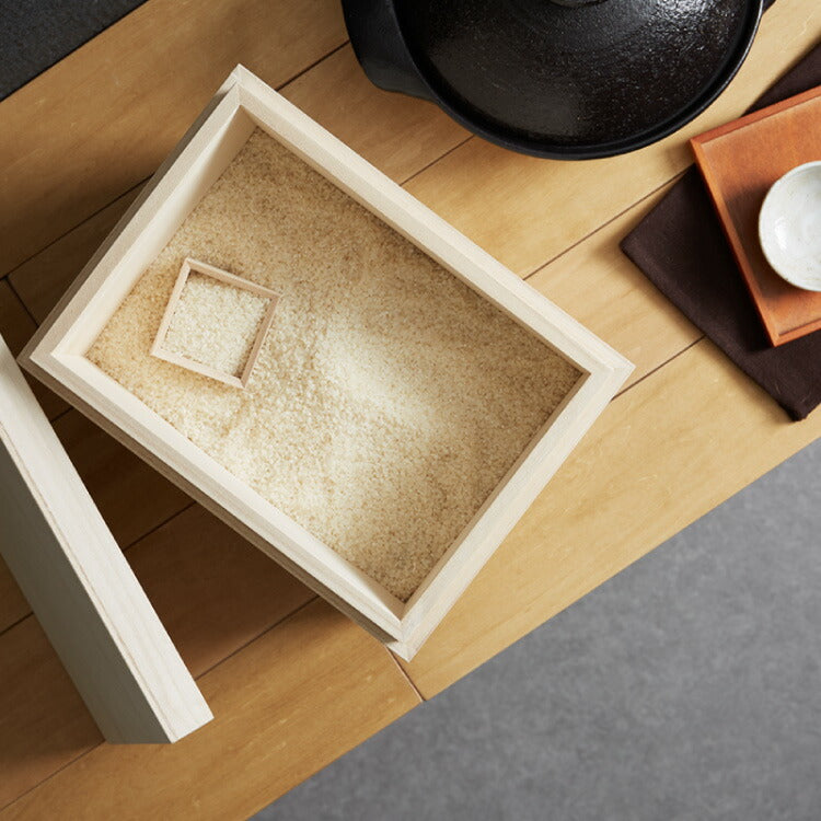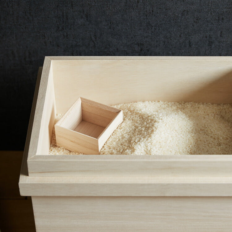 ・お米の計量に便利な桐製の一合マスも付いています。