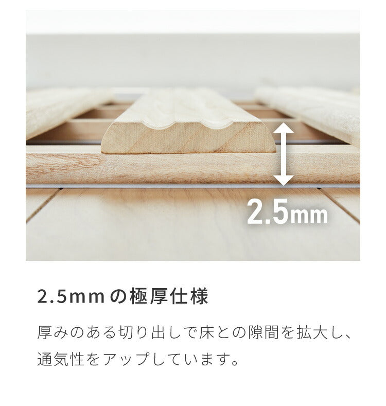 もちろん、一枚一枚の板に凸凹をつけるリブ加工なので、新鮮&爽やかな風を通すことでお布団をカビ・ダニから守り清潔に保ちます。