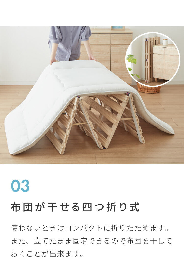 日本製 寝心地重視の2本溝 4つ折り桐すのこベッド シングルサイズ 特許取得 国産 桐 すのこマット 折りたたみベット シングル 折りたたみ ベッド 木製 折り畳みベッド すのこベッド 除湿 カビ 結露(代引不可)