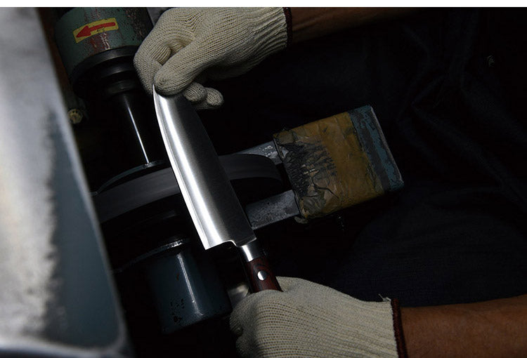 刀身/モリブデンバナジウム鋼複合材(心材:モリブデンバナジウム鋼、側材:13クロームステンレス鋼)、ハンドル/積層強化木、口金・中子/18-8ステンレス鋼