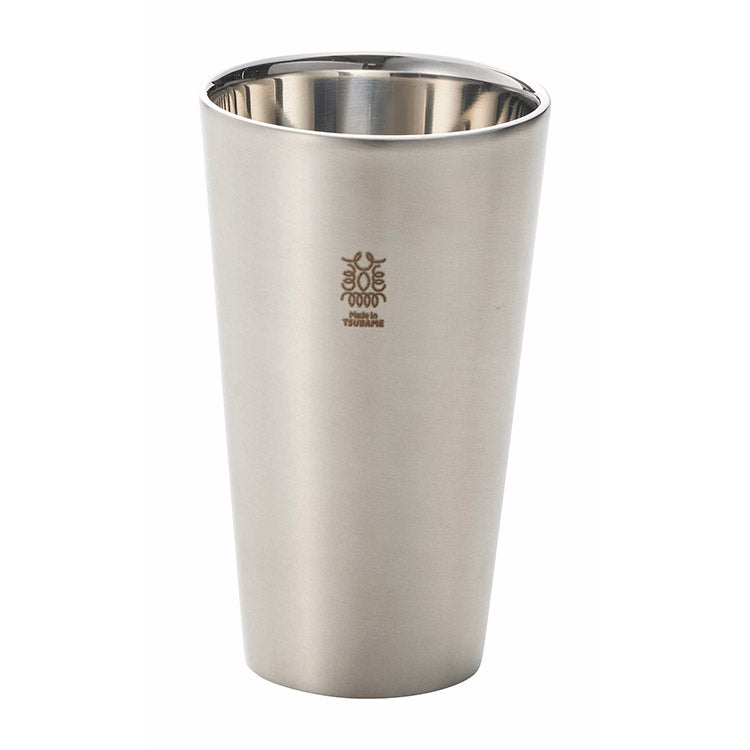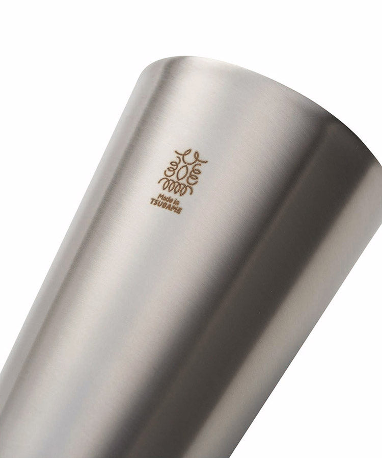 ステンレスの二重構造の為、保冷力があり、冷たさをキープします。内面底のR形状と研磨の効果が対流を起こし、ビールの泡をクリーミーにさせます。また、底角が丸い為、洗い易くなっています。口元は、口当たりが柔らかい形状。斜めサテン仕上げの側面は落ち着き感があります。