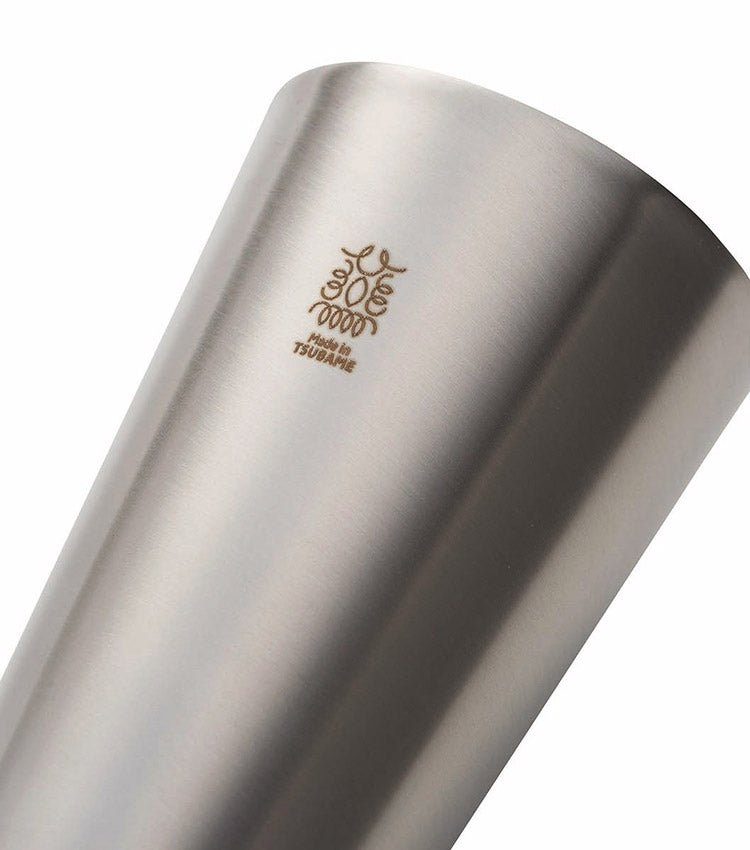 ステンレスの二重構造の為、保冷力があり、冷たさをキープします。内面底のR形状と研磨の効果が対流を起こし、ビールの泡をクリーミーにさせます。また、底角が丸い為、洗い易くなっています。口元は、口当たりが柔らかい形状。斜めサテン仕上げの側面は落ち着き感があります。