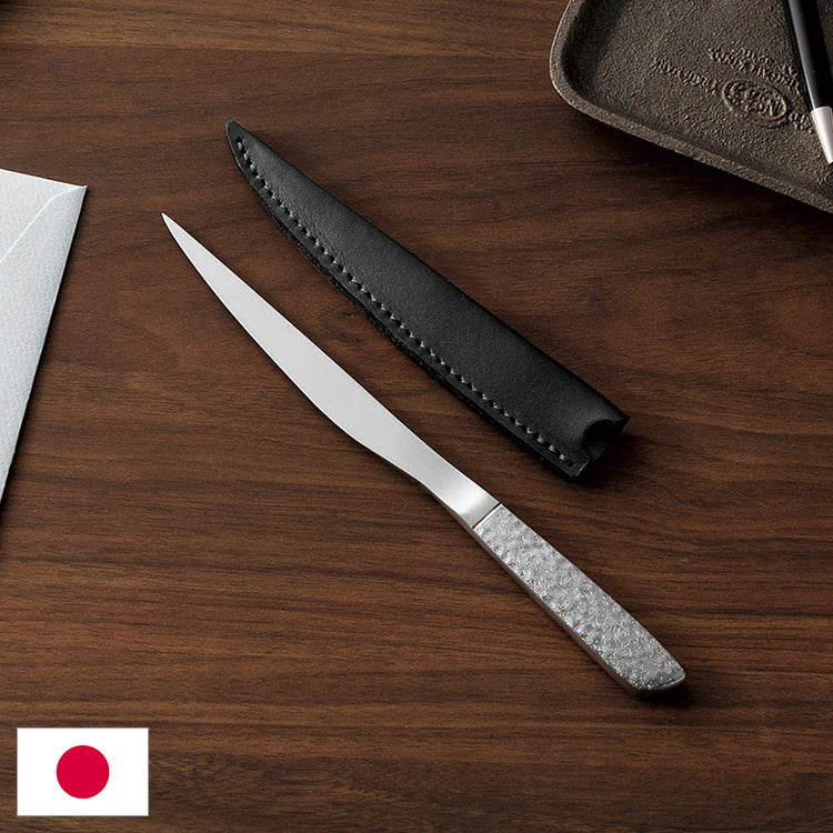 開封時に感動を与える質感。独創的で美しいデザイン、気品ある槌目模様が印象的なレターオープナー。手紙の魅力や価値をより感じることができる上品な大人向けツールです。刃物職人の手仕事による本格仕上げ。