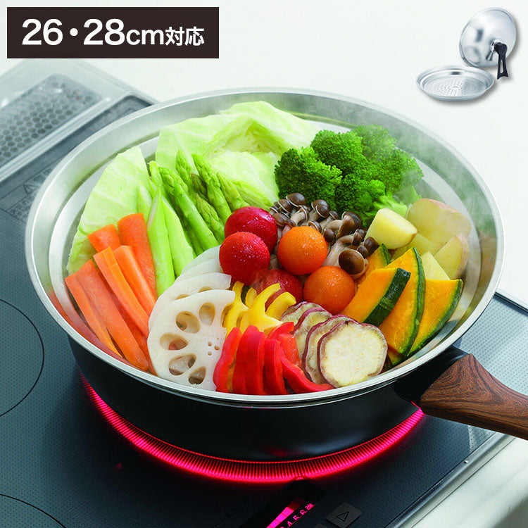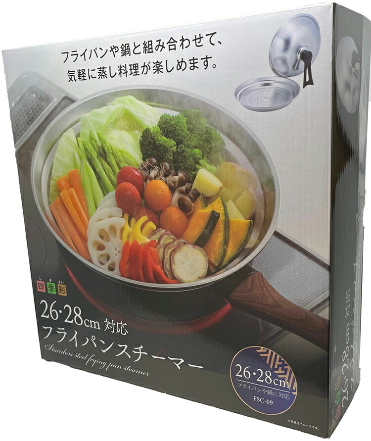 蒸し器 シルバー 蒸しプレート カクセー スチーマー フライパンスチーマー 26・28cm対応 FSC-09 フライパン用 鍋用 キッチン用品 蒸し料理 フライパンにのせて使う ふた付 ステンレス製 フタ付 蓋付(代引不可)