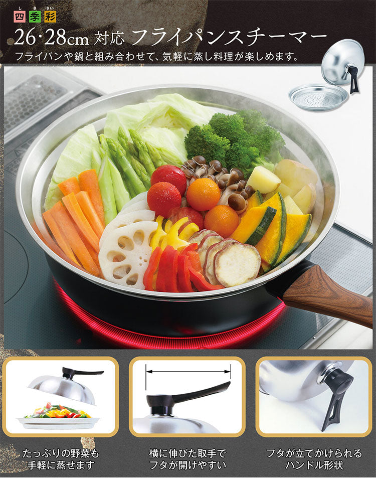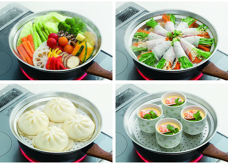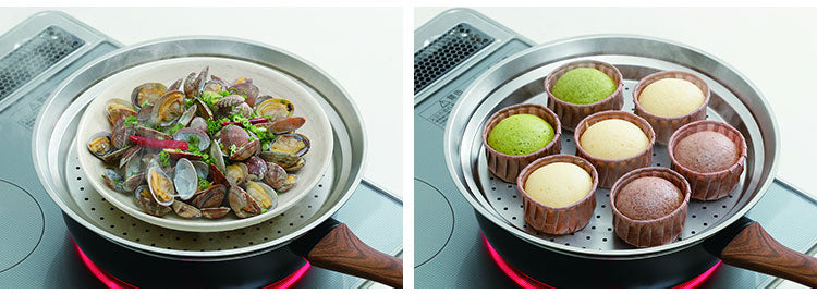 フライパンや鍋と組み合わせて、気軽に蒸し料理が楽しめます。