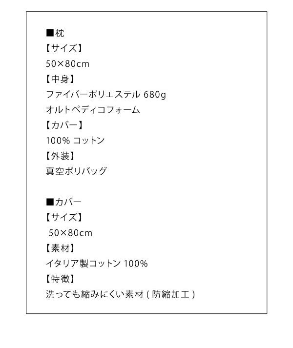 専用カバーセット オルトペディコ枕 50×80 イタリア製 まくらカバー 洗える スエコテックス100認証 ビバルディ グアンシアレ