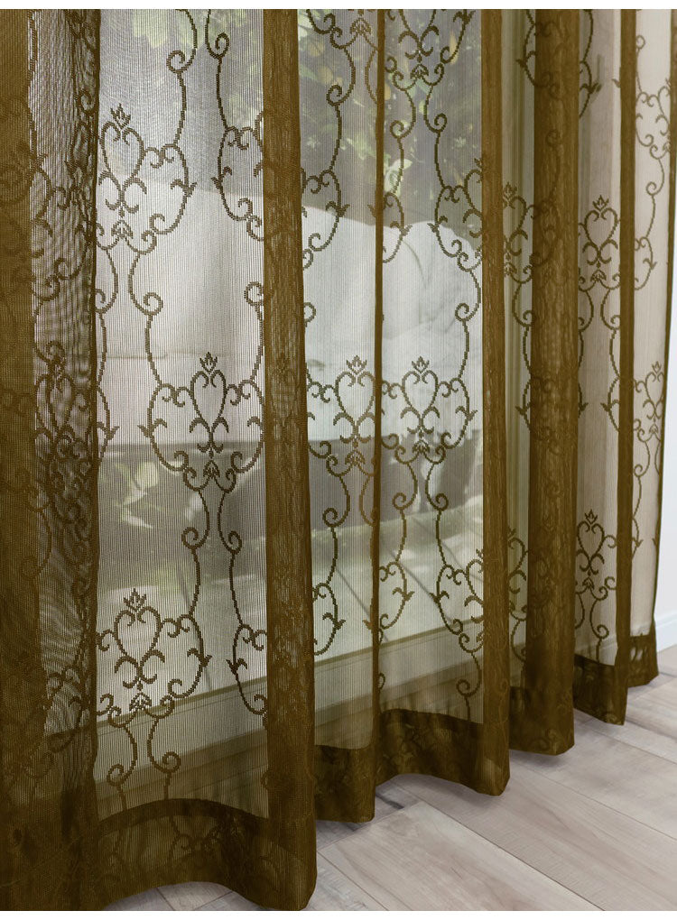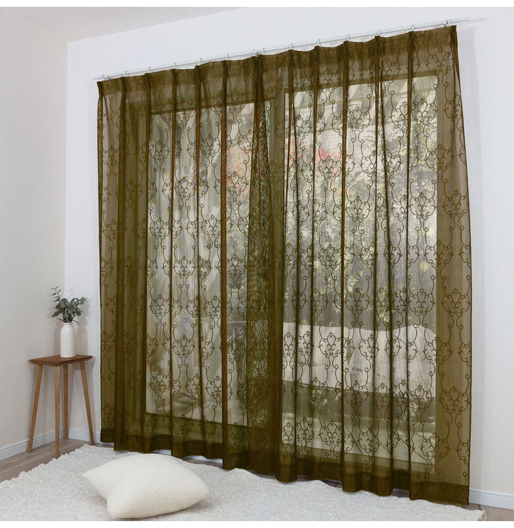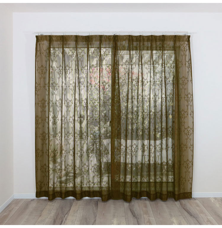 ミラーレースカーテン UVカット 日本製 40サイズ 幅100 幅150 幅200 レースカーテン ダマスク柄 ブラウン おしゃれ 洗濯OK 昼間見えにくい 賃貸 採光 国産 洗える カーテン(代引不可)