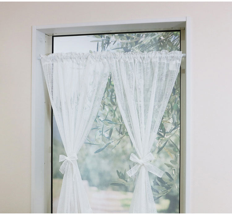 日本製 小窓レースカーテン 約巾70cm×丈90cm カフェカーテン 目隠し 人気 リゾート シンプル 小窓用 縦長 幅のせまい 共生地リボン付き キッチン トイレ 出窓 程よい透け感(代引不可)