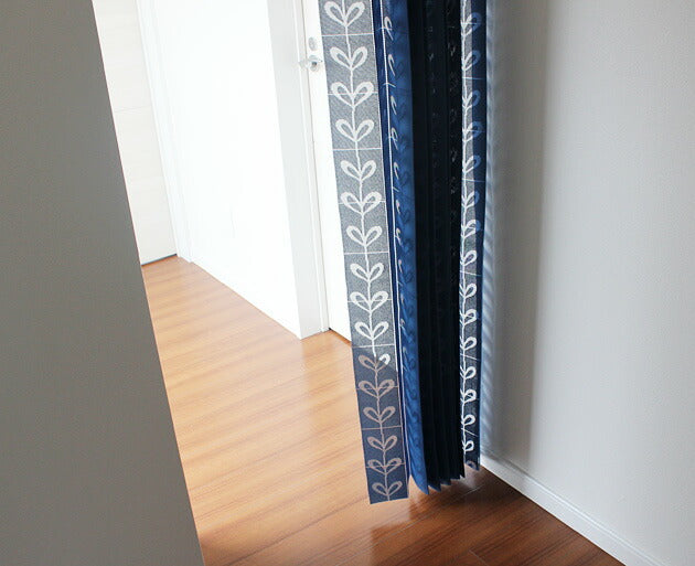 【日本製】 間仕切りカーテン フリーカット つっぱり式 北欧リーフ 遮熱 アコーディオン式 ウォッシャブル パーテーション 目隠し 間仕切り カーテン(代引不可)
