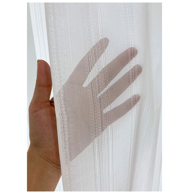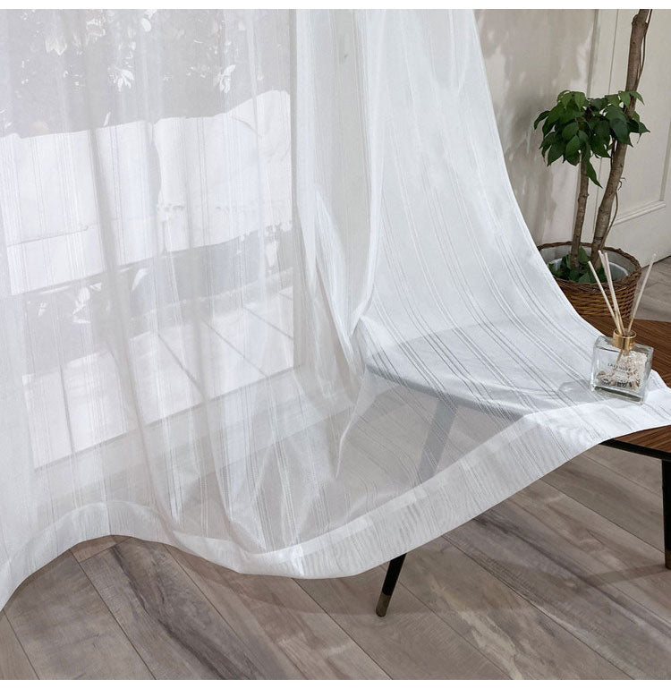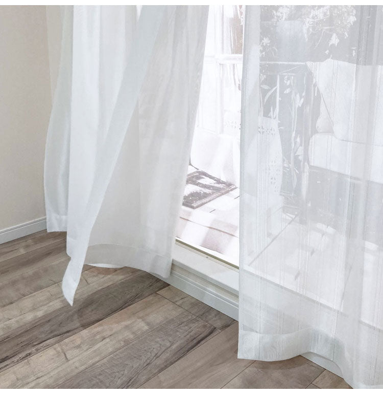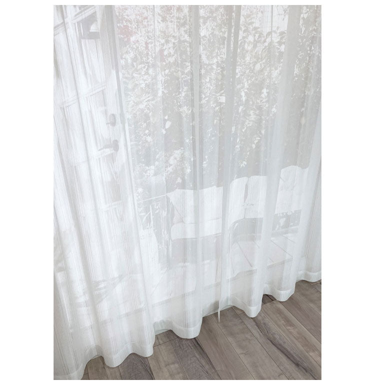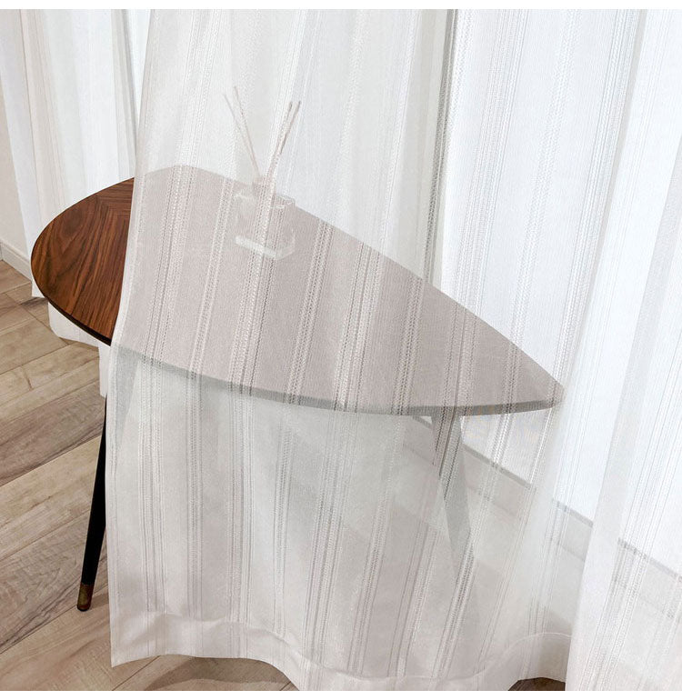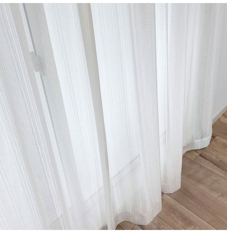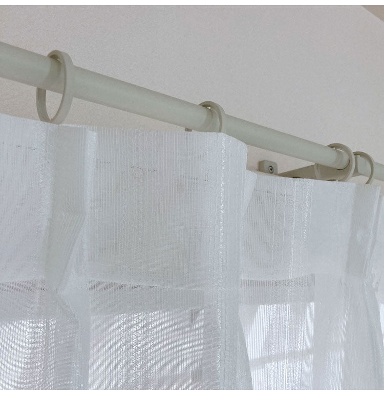 ストライプ調の優しいデザインでいろいろな厚地カーテンに合わせやすくお部屋に溶け込みます。