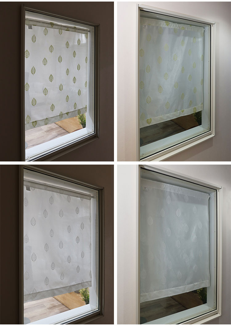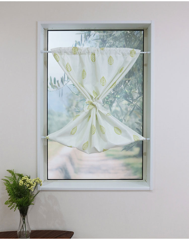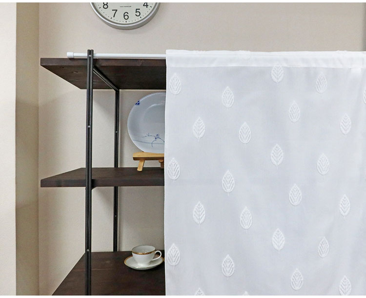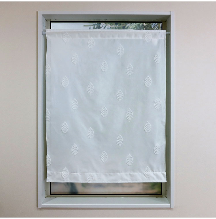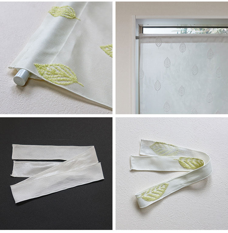 日本製 小窓レースカーテン 約巾70cm×丈90cm 小窓 出窓 カフェカーテン 遮熱 断熱 UVカット 目隠し 北欧調 葉っぱ柄 人気 エコリエ(R) 小窓用ミラーレースカーテン 共生地リボン付き キッチン トイレ(代引不可)