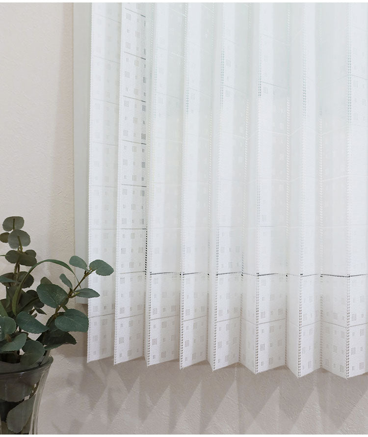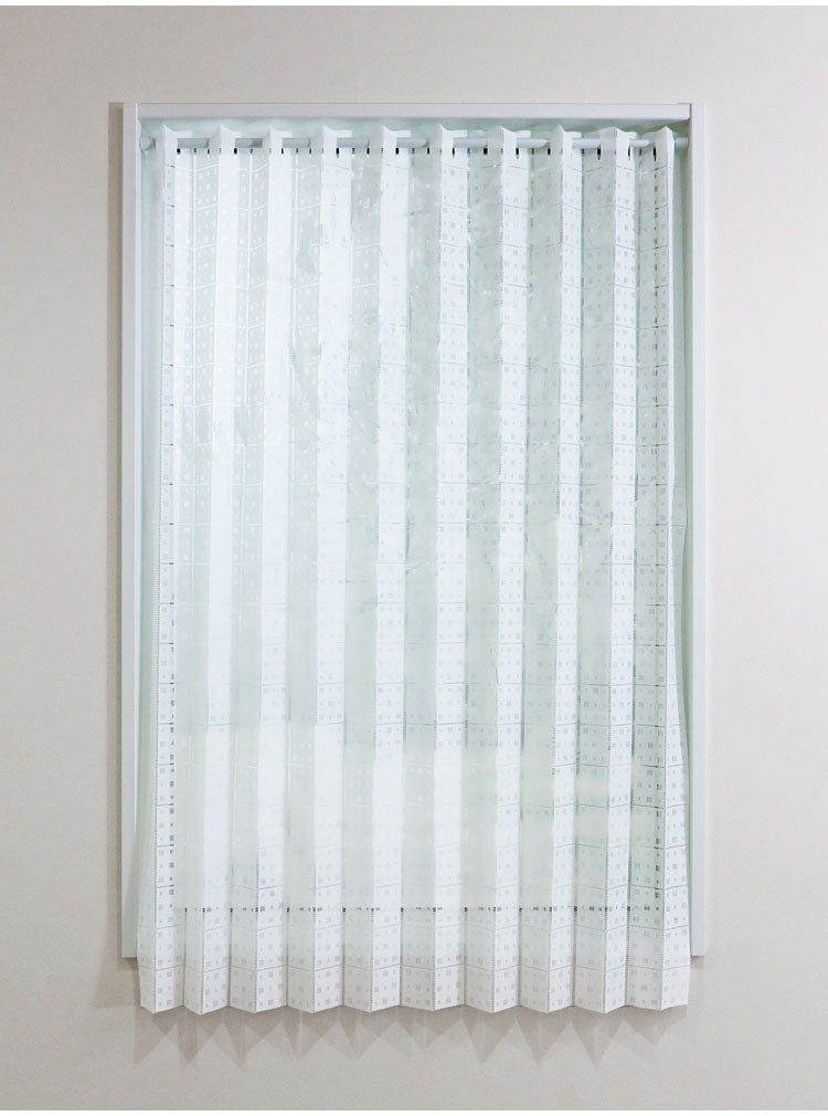 日本製 巾100cm×丈115cm ホワイト パタパタ アコーディオンカフェカーテン ドット柄 ハサミでカット 程よい透け感 取り付け簡単(代引不可)
