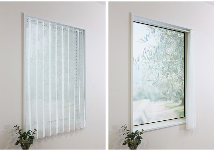 ・ 暖簾のような間仕切りや目隠しとしての使い方はもちろん、通常の窓や小窓などに取り付けられる活用の幅の広い便利な仕様です。