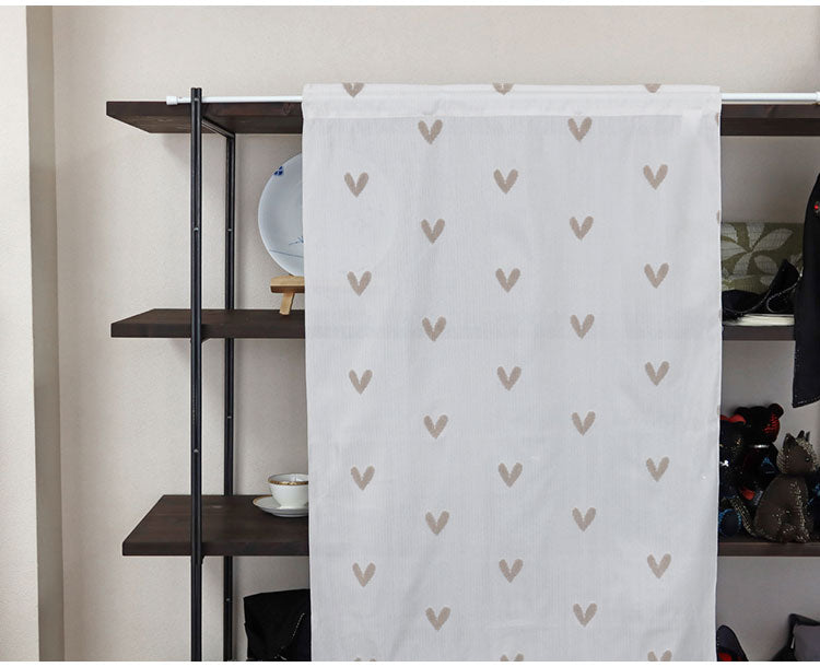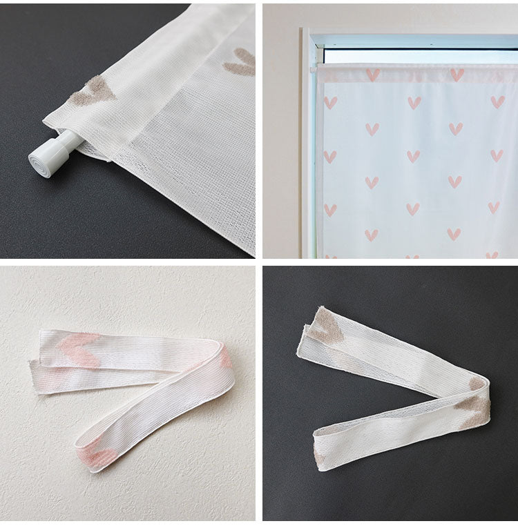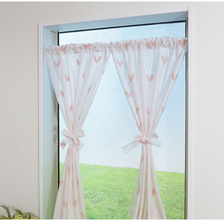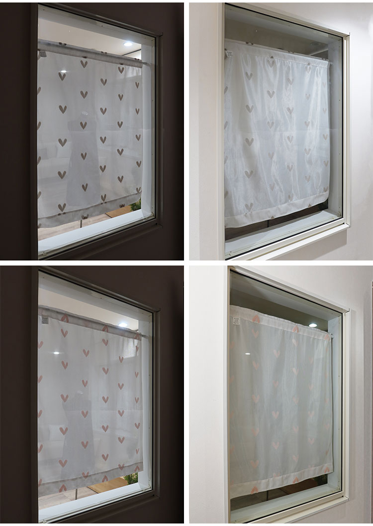 日本製 小窓レースカーテン 約巾70cm×丈120cm 小窓 出窓 カフェカーテン 遮熱 断熱 UVカット 目隠し 北欧調 ハート柄 人気 エコリエ(R) 小窓用ミラーレースカーテン 共生地リボン付き キッチン(代引不可)