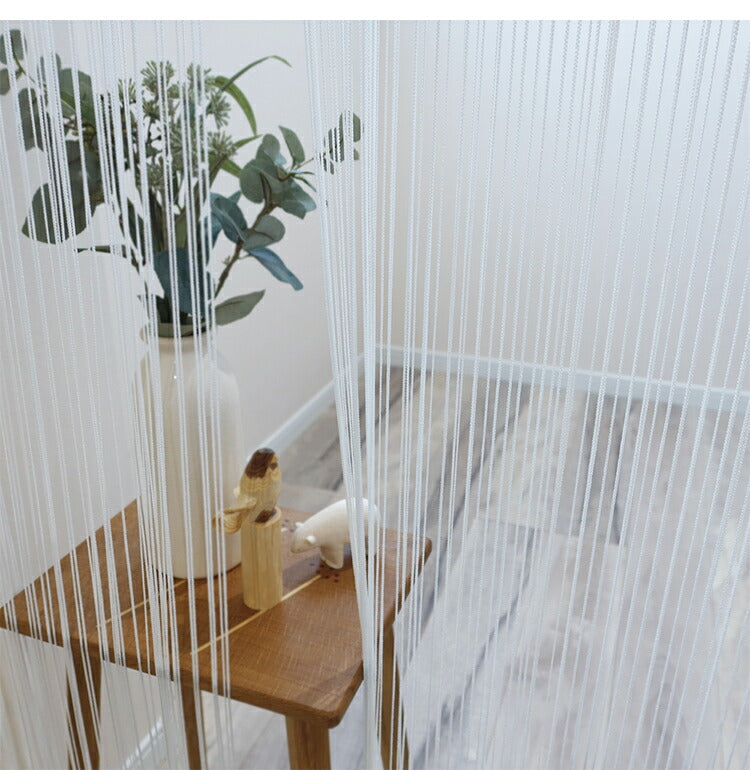 日本製 防炎 ひものれん 北欧風 間仕切り のれん 暖簾 約幅85cm×丈170cm 突っ張り棒 キッチン トイレ 程よい透け感 おしゃれ 小窓 出窓 お洒落 防炎加工 取り付け簡単(代引不可)