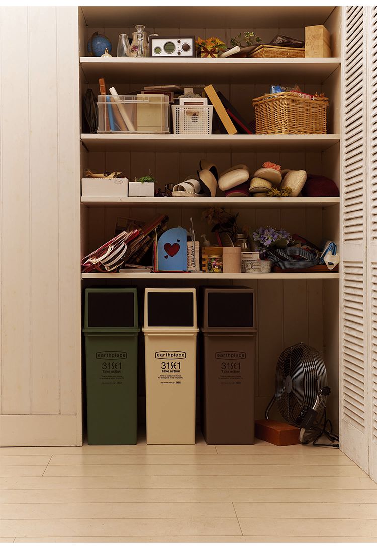 フロントオープンダスト(EPE-05/EPE-08)の上に積み重ねて使用でき、上下でゴミの分別が行えます。本体内側には、ゴミ袋を装着しやすいバックストッパー付。持ち運びに便利な金属ハンドル付