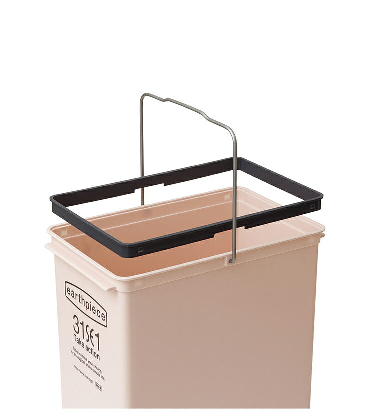 投入口は大きめの設計で使いやすい上、フタの開閉音を抑える緩衝パーツを内蔵するなど、細かな配慮を行っています。同機種及び、他モデルと積み重ねて使用できます。本体内側には、ゴミ袋を装着しやすいバックストッパー付。持ち運びに便利な金属ハンドル付。投入口を開放したままにできるロック機能付