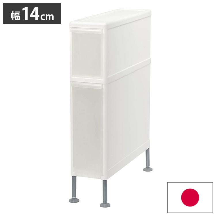 ○こちらの商品は幅がたったの14cmとスリムなので、狭い空間でも隙間を作りたくない、収納が足りないという方におすすめです。必要設置幅は15cm以上なので購入前にサイズのご確認をお願いします。サイズ違いの17cmもあるので、設置場所に合わせて選んでみてください。