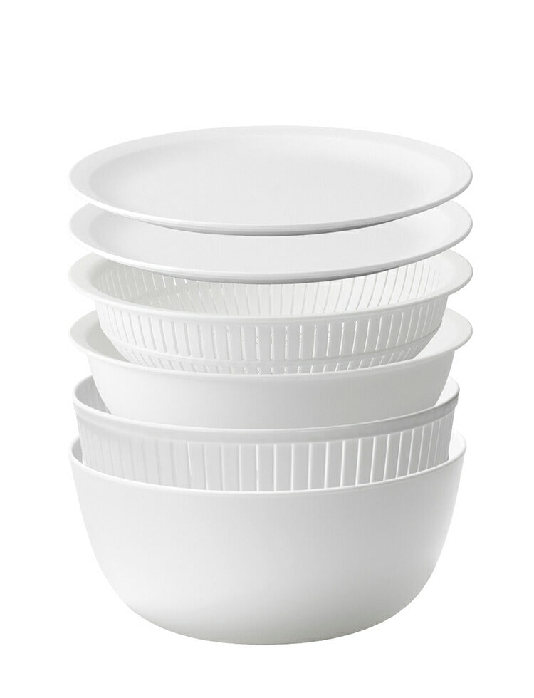 深型・浅型・プレートすべてを重ねてコンパクトに収納できる設計。(※深型は別売り)