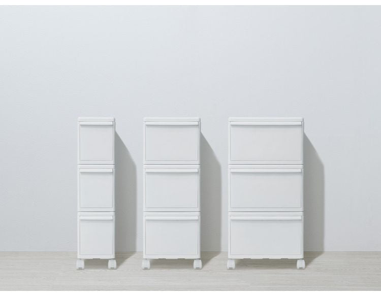 スリムは隙間収納にも使用でき、収納する場所に応じて商品をお選びいただけます。(キャスターは別売)