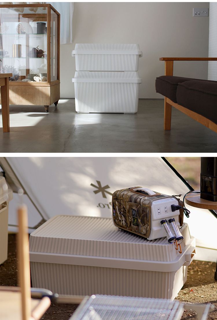 ジグザグに連結させた構造体を採用し、衝撃にも優れた樹脂で作られた頑丈なハードタイプのコンテナーです。しっかりとした耐久性があるため、屋外・屋内問わず使用することが可能。アウトドアギアやガーデニング用品の収納はもちろん、日用品のストレージボックスとしてなど多目的に活躍します。スタッキングもできるので場所を取ることなくスペースの管理も容易です。